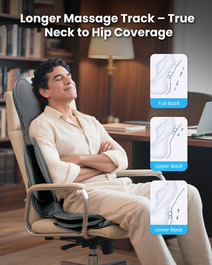 3 levels of rhythmic bags wrap the waist and hips, relieving stiffness from long sitting hours. A thoughtful upgrade compared with basic back massagers.