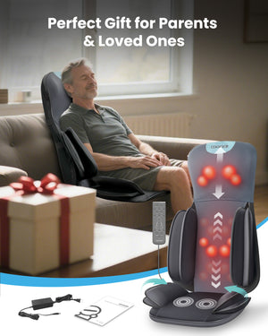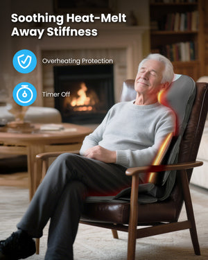 This shiatsu back massager with heat works along the spine from neck to hip, delivering deep tissue relief to tight muscles. Combined with rhythmic air compression, it functions as a versatile massage chair padβ€”ideal for pain relief and daily relaxation in any chair at home or office. Experience the benefits of a full body massager with this back massager for pain relief and deep tissue needs.