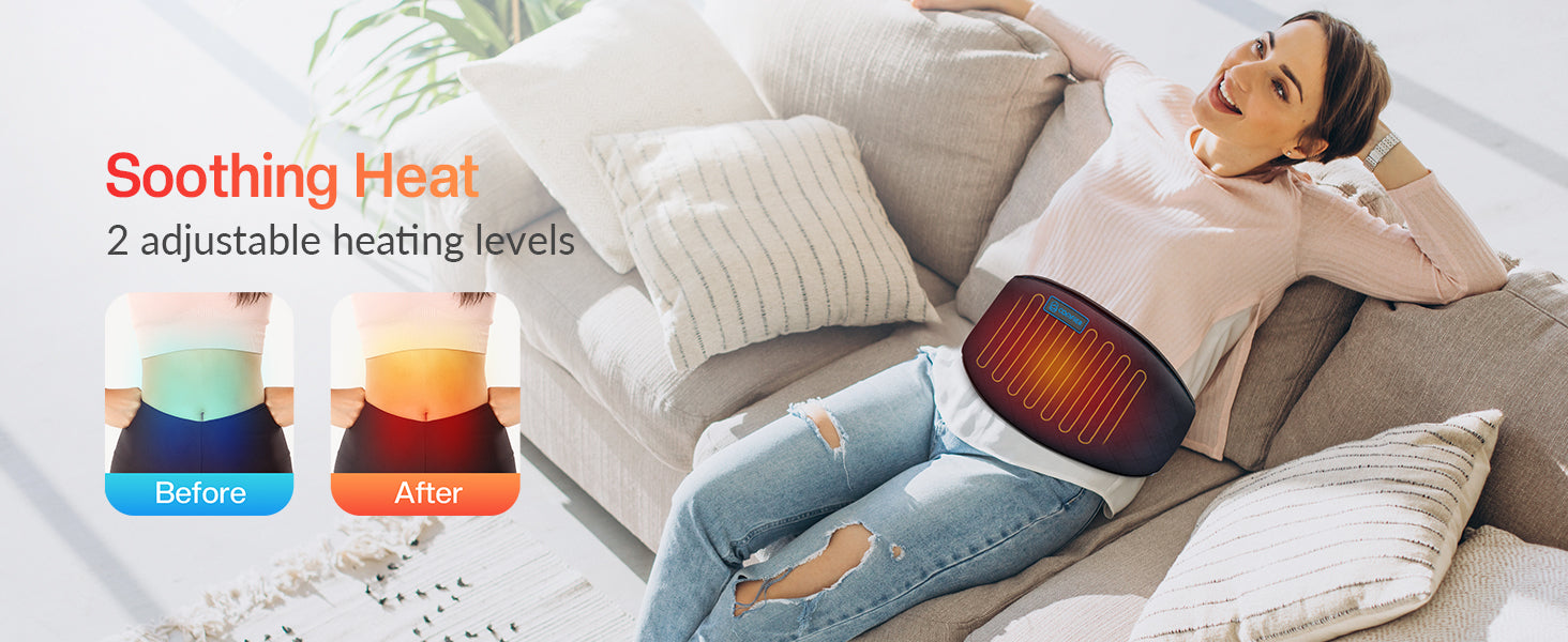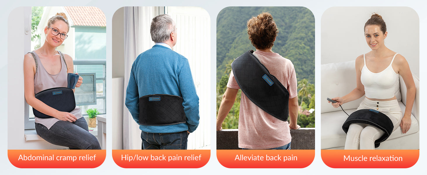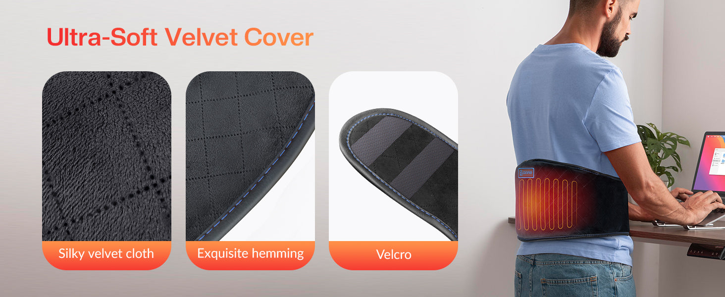 The back heating pad for cramps is made from ultra-soft velvet cloth materials that are gentle on your skin. The soft, breathable fabric ensures a comfortable massage experience.