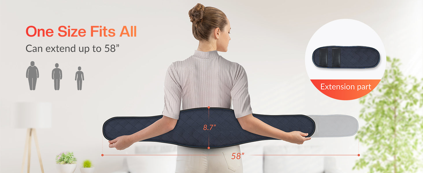 A comfier lower back massager for back pain features an extended heating belt to 58 inches that can be adjusted to fit your needs. The back massager with heat provides targeted heat therapy, promoting blood flow and reducing muscle stiffness for maximum relief.