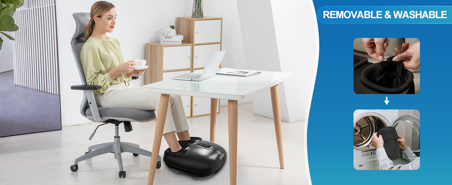 The foot sleeves are breathable and detachable, making them easy to clean and maintain the shiatsu foot massager. The machine accommodates foot sizes up to 13, making it an ideal gift for mom, dad, women, and men, Gifts for her, or him on special occasions like birthdays, Mother's Day, Father's Day, Thanksgiving, and Christmas. It comes with a one-year warranty for up to three years upon registration.