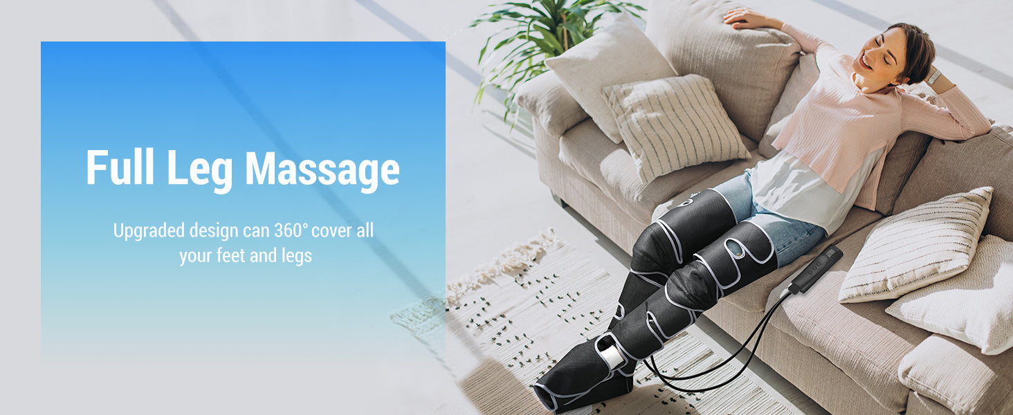 Comfier leg massager for pain relief is designed to cover your full leg, foot, calf, thigh, knee, sole, and instep, relieving pain, aches, fatigue, cramps, and muscle tension. A comfier leg massager with heat provides soothing heat therapy to alleviate knee stiffness and soreness.