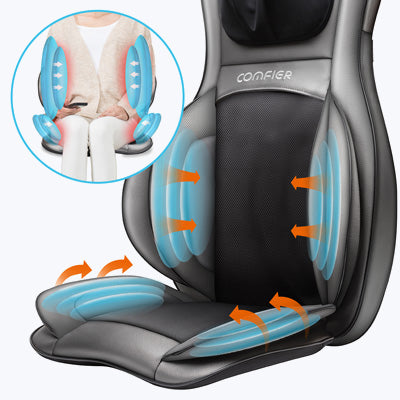 Comfier shiatsu neck & back massager with heat utilizes innovative 2D/3D Finger Pressure Shiatsu, Rolling, Compression, Vibration, and Heat functions to help you eliminate fatigue, stress, and relieve muscle pain. Enjoy a fantastic full-body massage with the massage chair pad anytime.